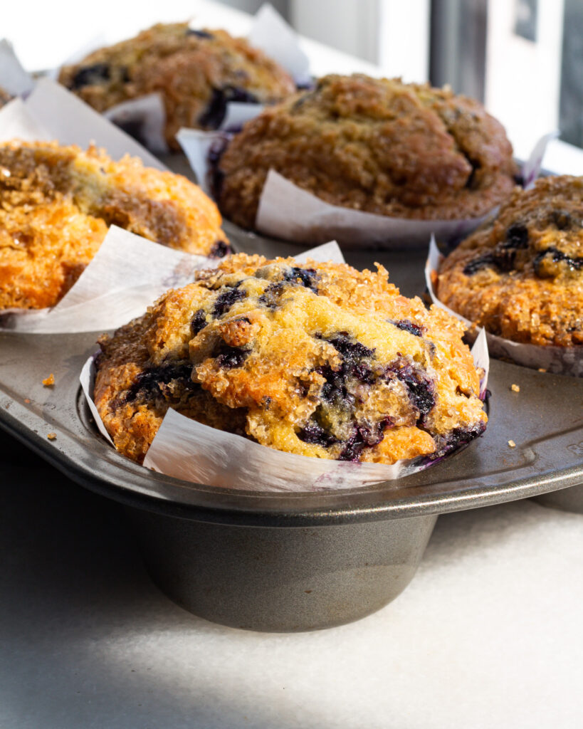 If I had to nominate a classic brunch muffin, it would be this one. These blueberry muffins are fluffy, buttery, and absolutely packed with berries, with a lemon-ginger sugar on top that adds just enough sparkle to make them feel extra special.