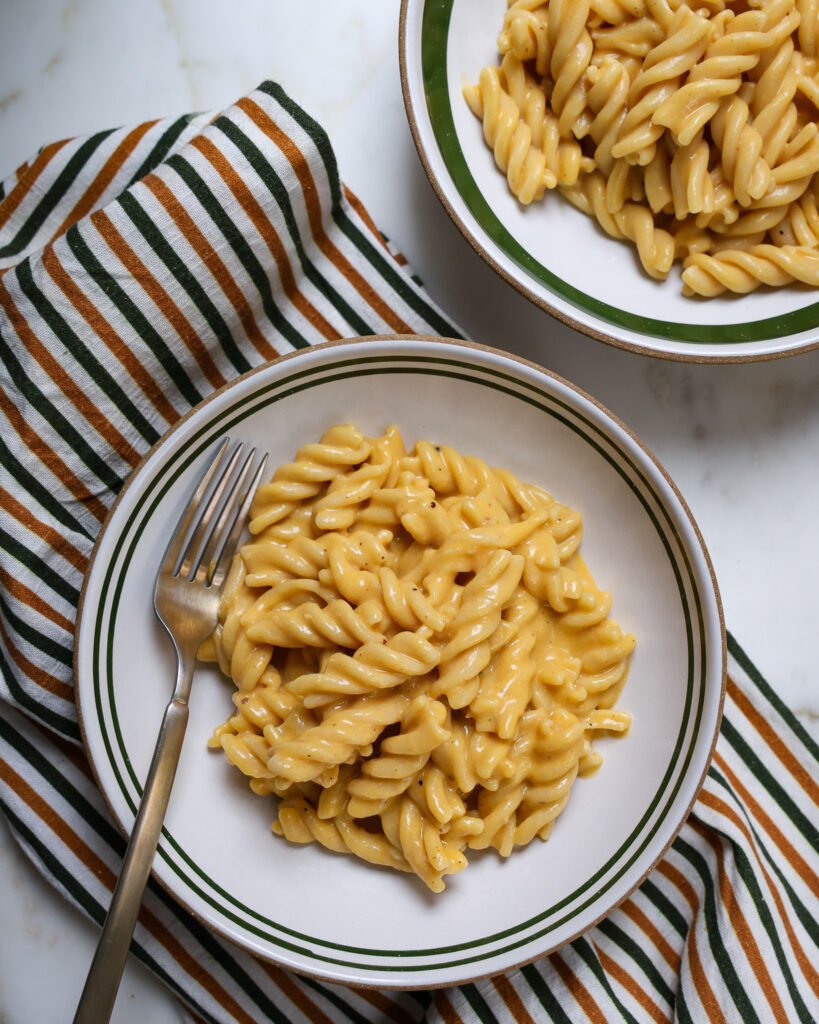 This version is creamy, rich, and deeply nostalgic—but secretly powered by butternut squash and silken tofu. And before you go running, I promise: you will not taste either. What you will taste is a velvety, cheesy sauce that clings to every noodle in the most luxurious way. Plus, you get protein and vegetables with it – win, win.
