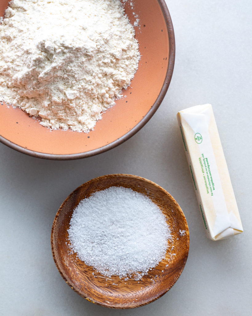 Ingredients you will need for an all-butter pie crust