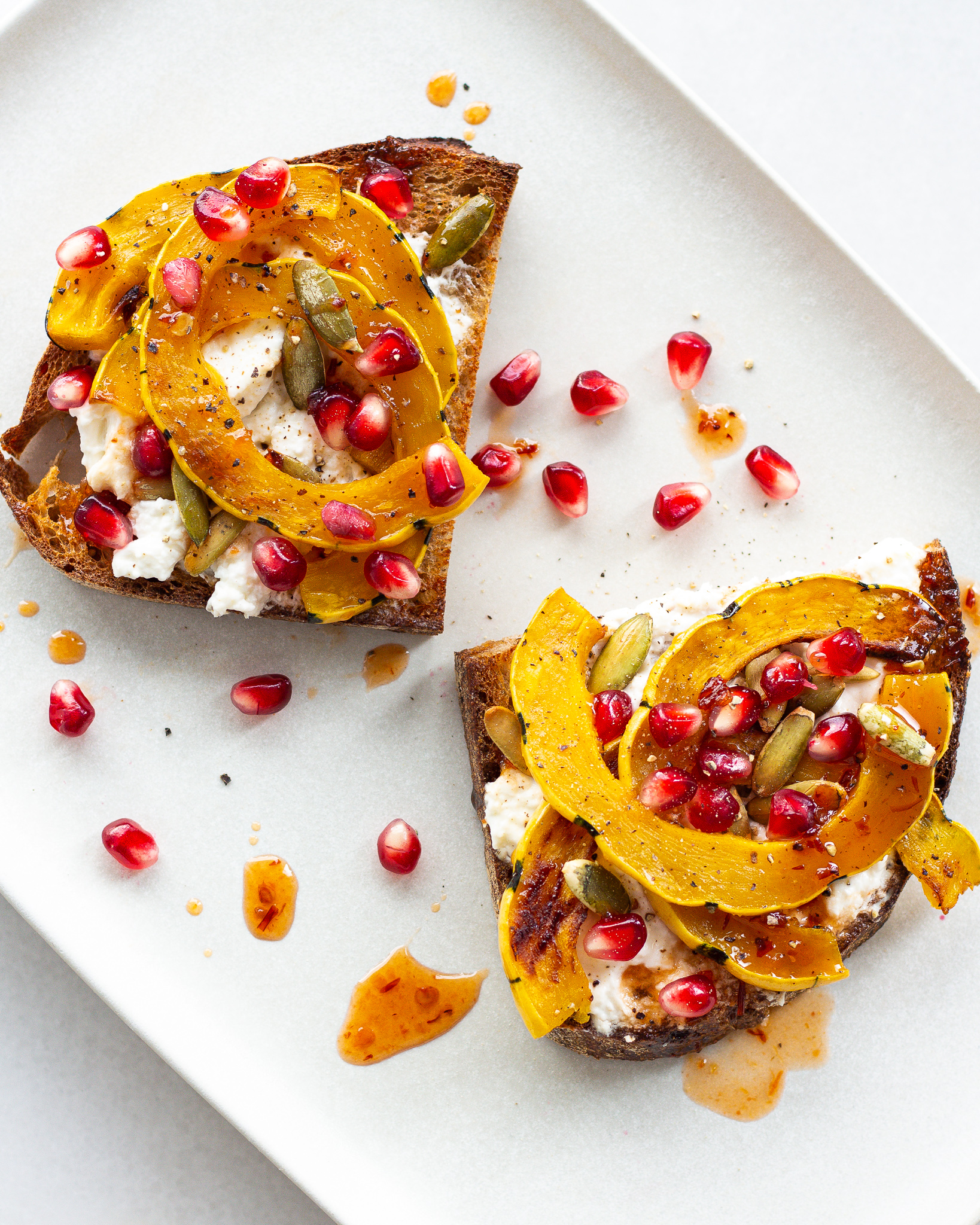 Delicata Squash & Burrata Toast with Hot Honey