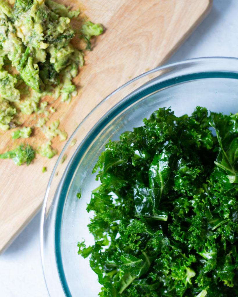 When you massage kale in a bit of olive oil (which is crucial) the fibrous strands in the vegetable break down, and it becomes softer, more chewable and just easier to consume in general. Plus the fattiness of the evoo just makes it that much more delicious.