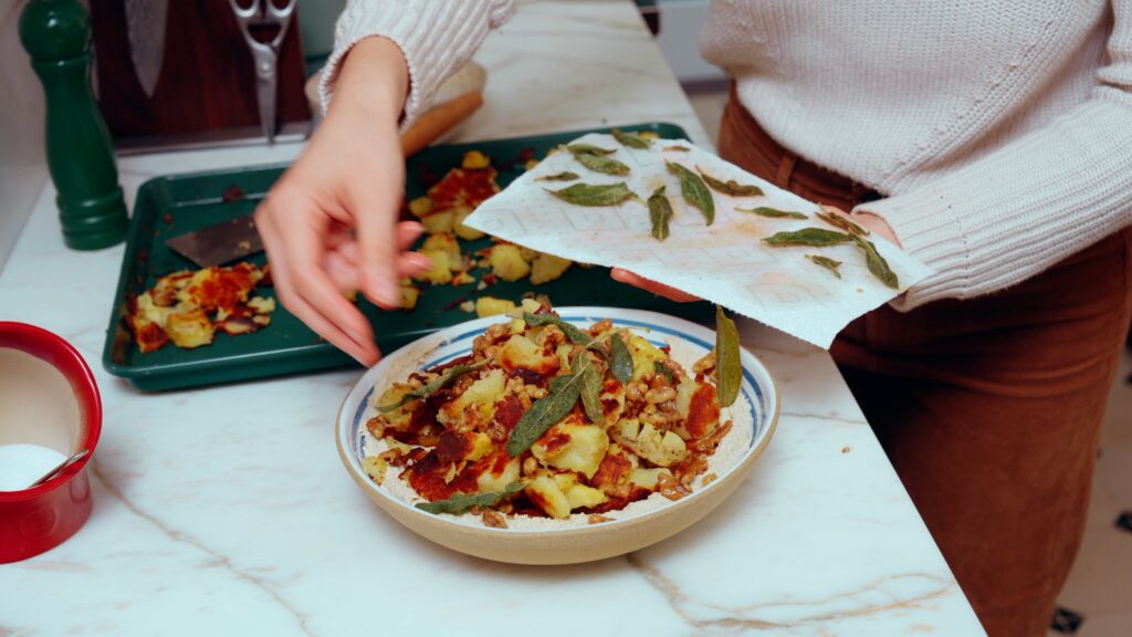 How to make these Brown Butter Crispy Potatoes with Walnuts & Sage ahead of time