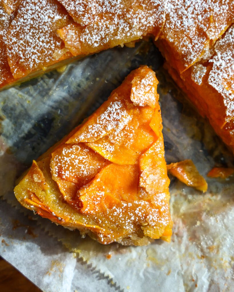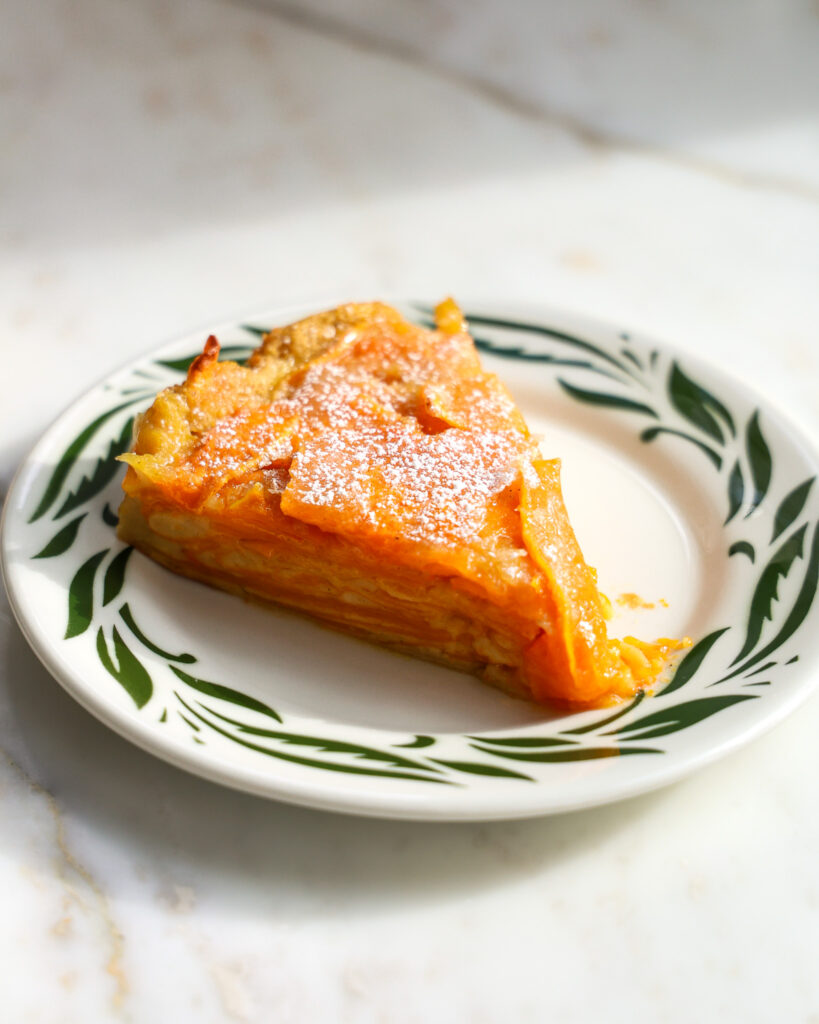 I don’t know how to describe Butternut Custard Cake it other than: it’s sweet and soft butternut layers nestled in between a soufflé pancake batter. Luckily, it’s easier than any soufflé out there.