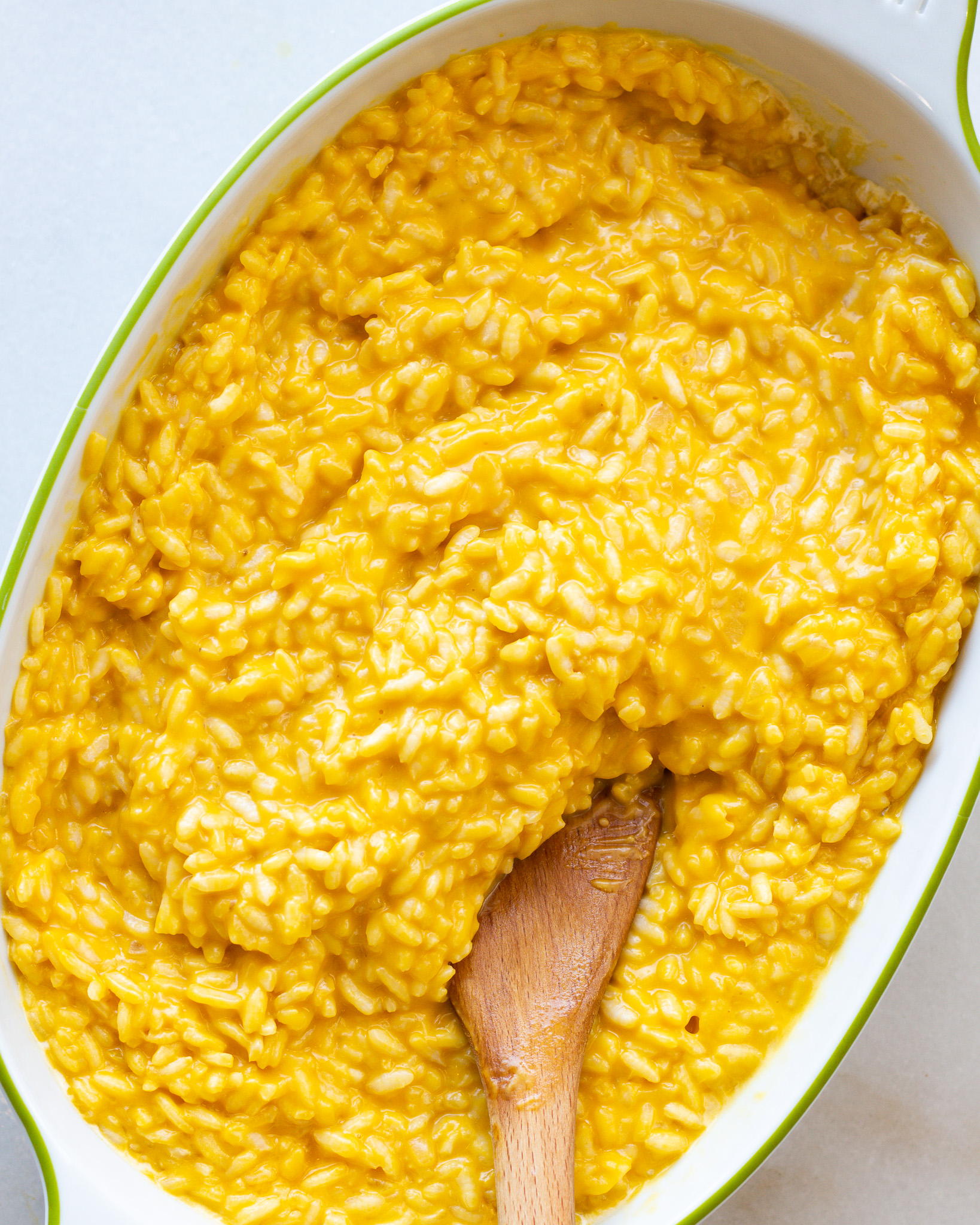 This butternut squash risotto is creamy, easy and unlike any other butternut squash risottos you might see on the internet. In this recipe, instead of adding a butternut squash purée before or after the risotto process, we add a butternut squash “broth” during the process. This gives this risotto a gorgeous yellow color, and you get the deep, nutty sweetness of the risotto throughout. It might be my favorite way to eat risotto, but it’s definitely my favorite way to get rice on the table for Thanksgiving.