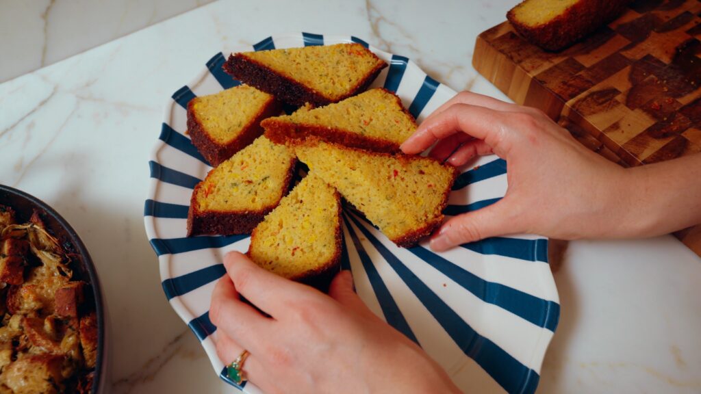 Double the chili – triple the fun, is what I always say. But do not worry! This Calabrian Chili Cornbread is not too spicy. In fact, it’s so rich, dense and buttery that I dare to say we need the chili to balance it out. If you want a fun twist on a holiday bread, this Calabrian Chili Cornbread with Whipped Honey Butter is just waiting for you to discover her.