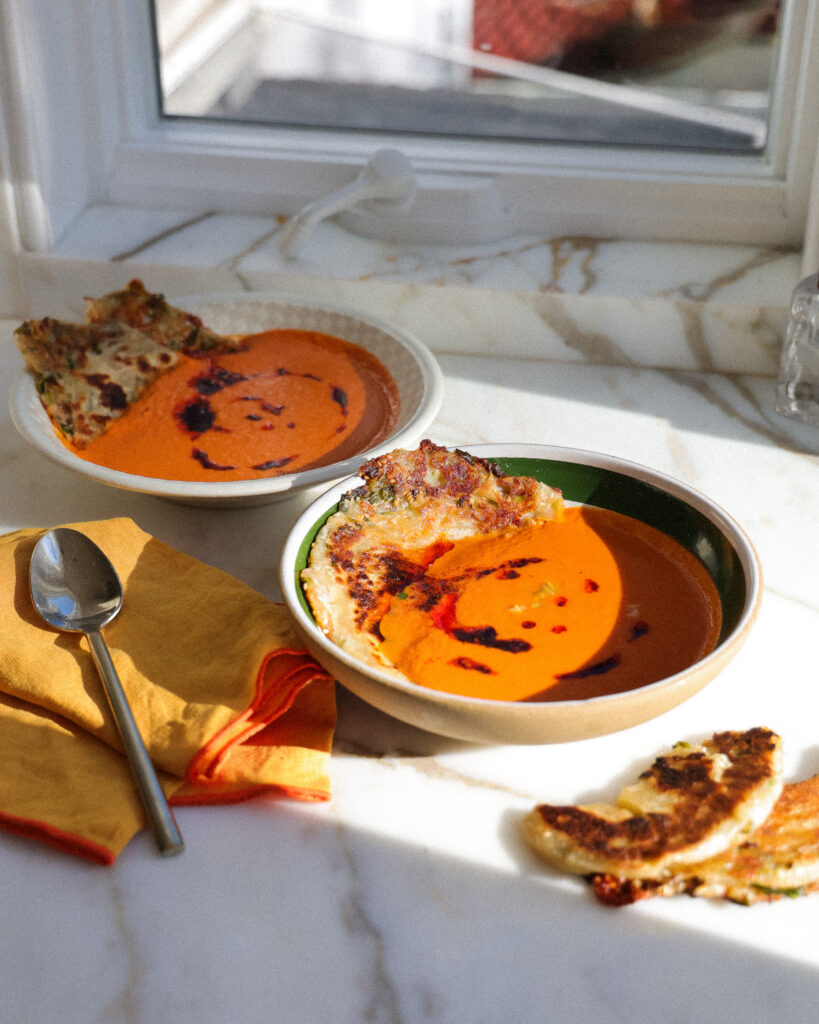 The caramelized gochujang is what really makes this tomato soup pop, but if you don’t have it on hand, you can opt for tomato paste and chili flakes, or even swap to harissa.