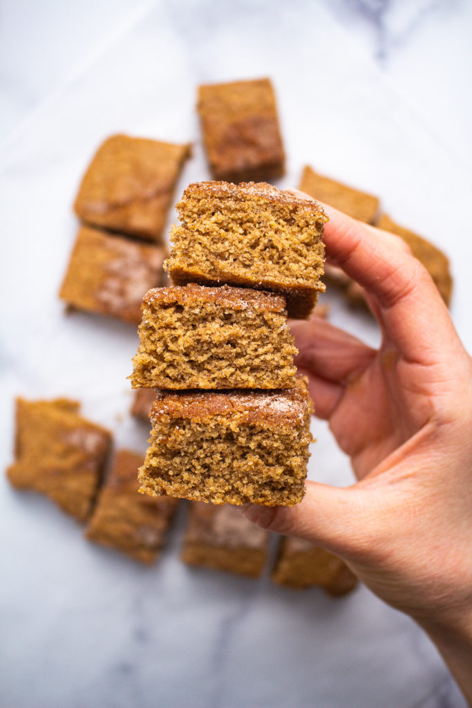 Whenever people ask me to choose a favorite recipe of mine, I have ZERO issue saying that it’s this one. These chocolate churro breakfast bars are hands-down my favorite, mostly for the ease, the simple ingredients, and the almost-magic of the recipe.