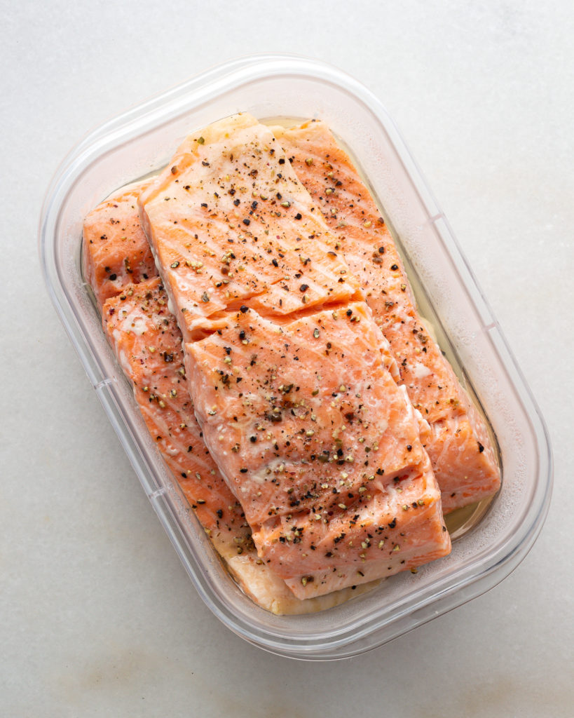 If you prefer to use frozen for this recipe, I recommend thawing the salmon in the fridge at least 6 hours before cooking.