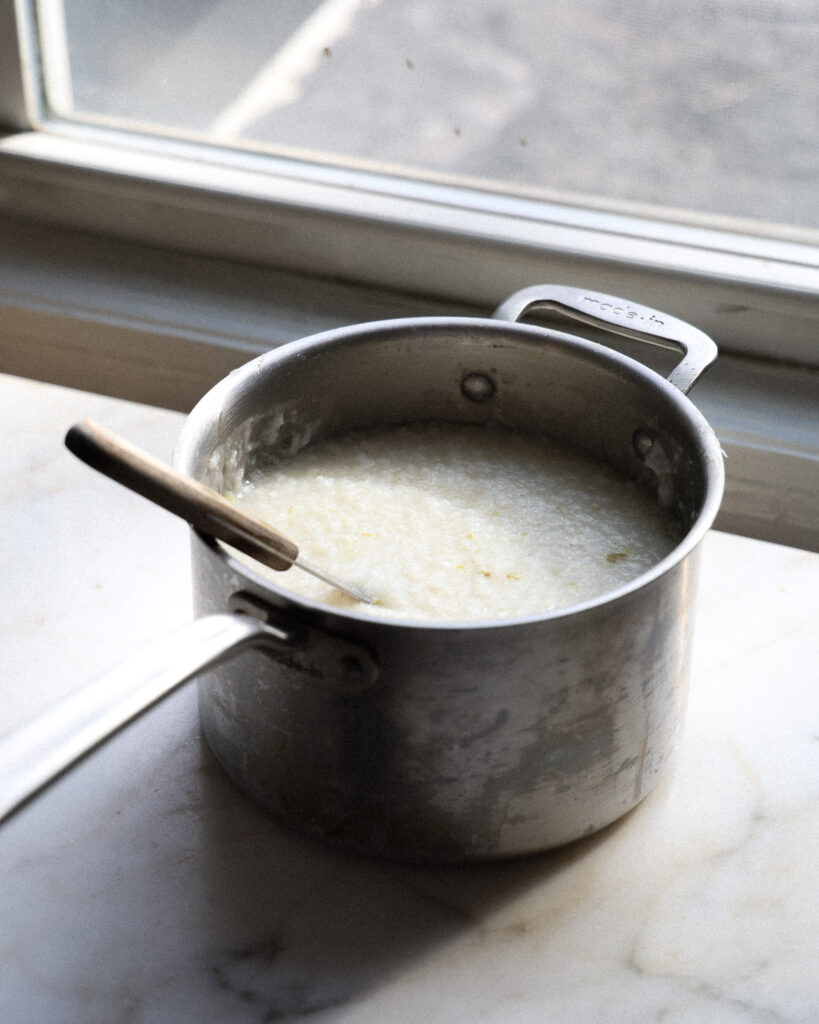 - Cook an aromatic (such as scallion whites) in a bit of oil before adding the water – this gets your congee started with a layer of flavor before the rice even hits the water!