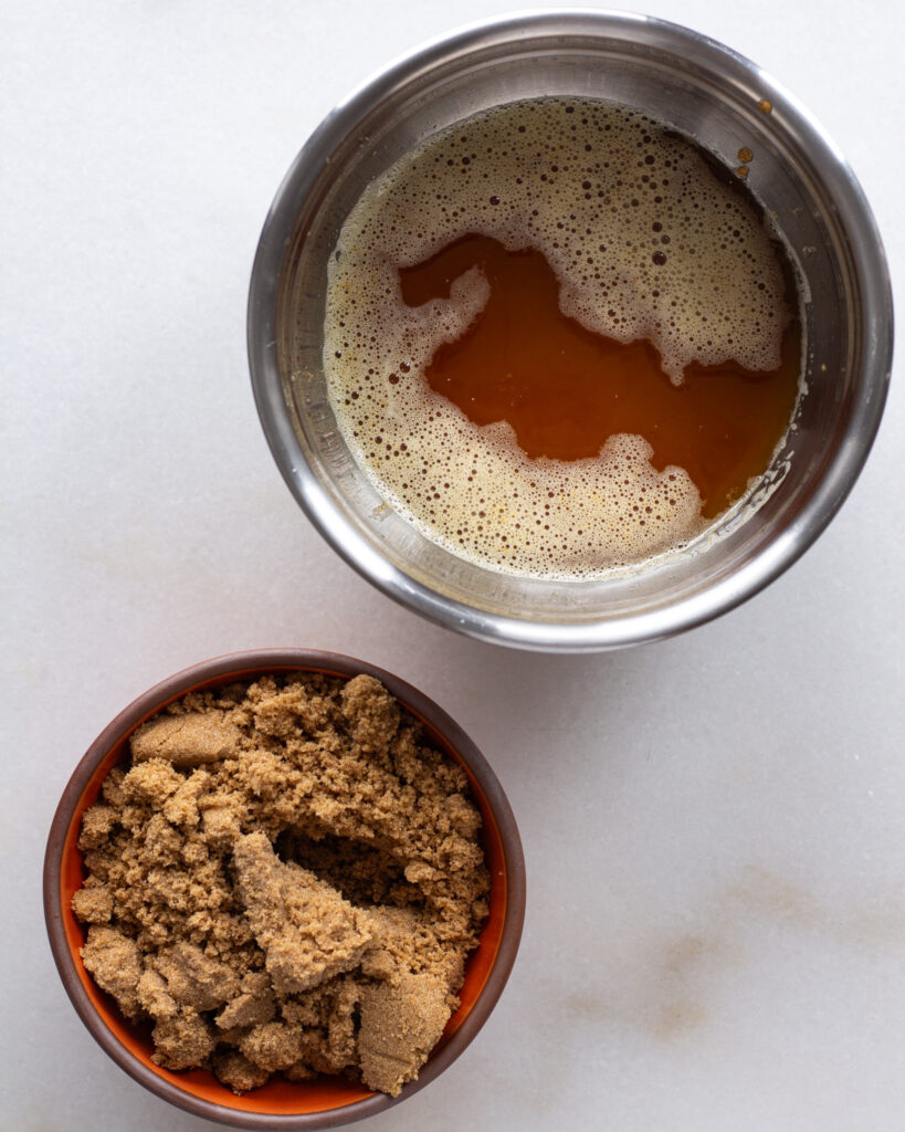 Now cornmeal brown butter is simple, but you need to make sure you allow it to get fully to room temperature before adding the brown sugar. This is so that the brown sugar doesn’t melt into the brown butter and make everything all difficult to spread.