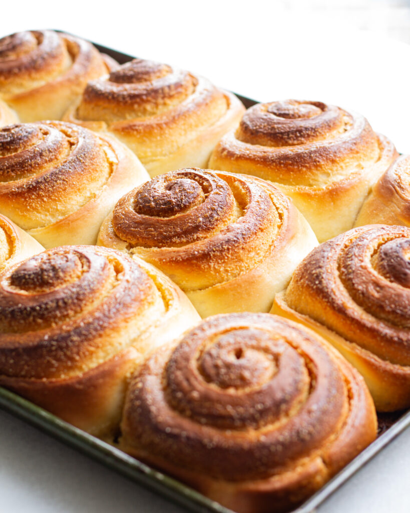The dough recipe was chef’s kiss. I’m definitely in love and no matter what kind of cinnamon roll I make this is now the go-to recipe. Also tucking a bit of the dough under the rolls is genius!