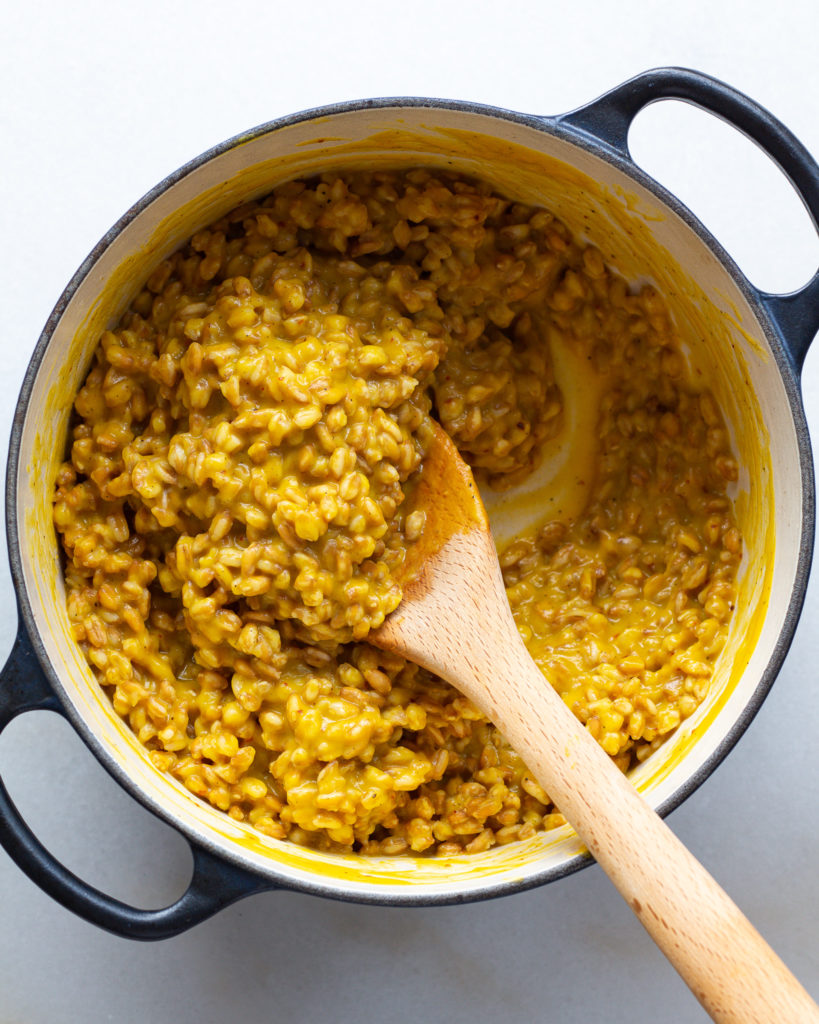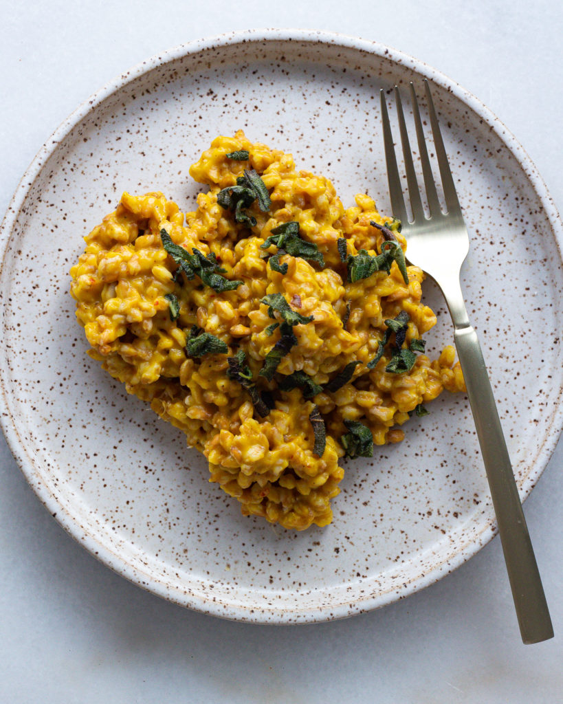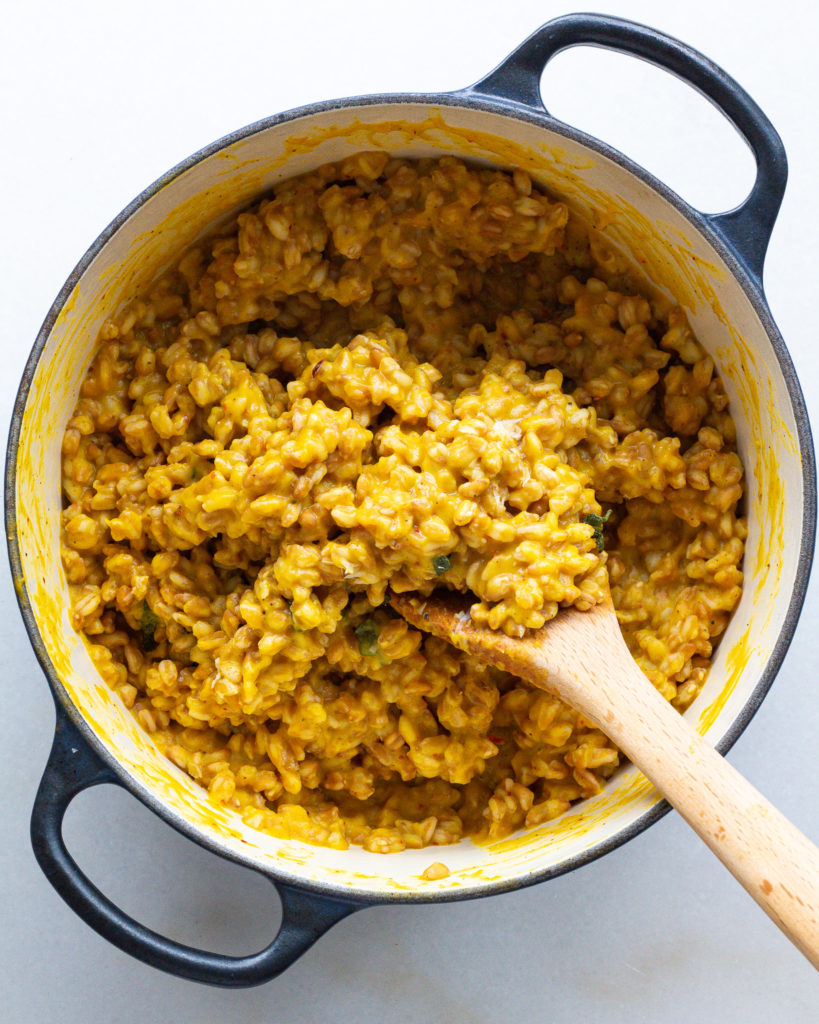 I made a shortcut version of this creamy butternut squash farro for my Trader Joe’s video, and immediately I had people asking for a homemade version. So of course, I had to deliver 😉