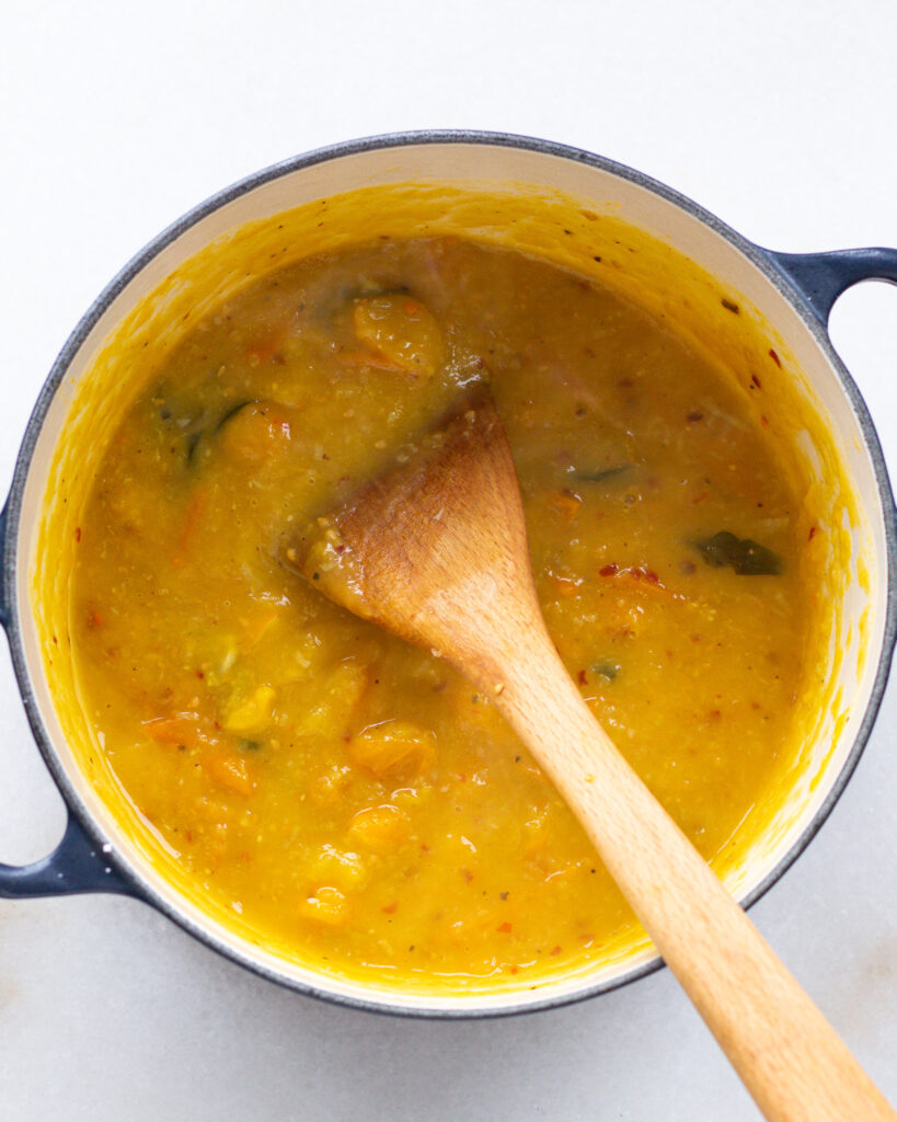 - Add the delicata squash pieces and stir again.