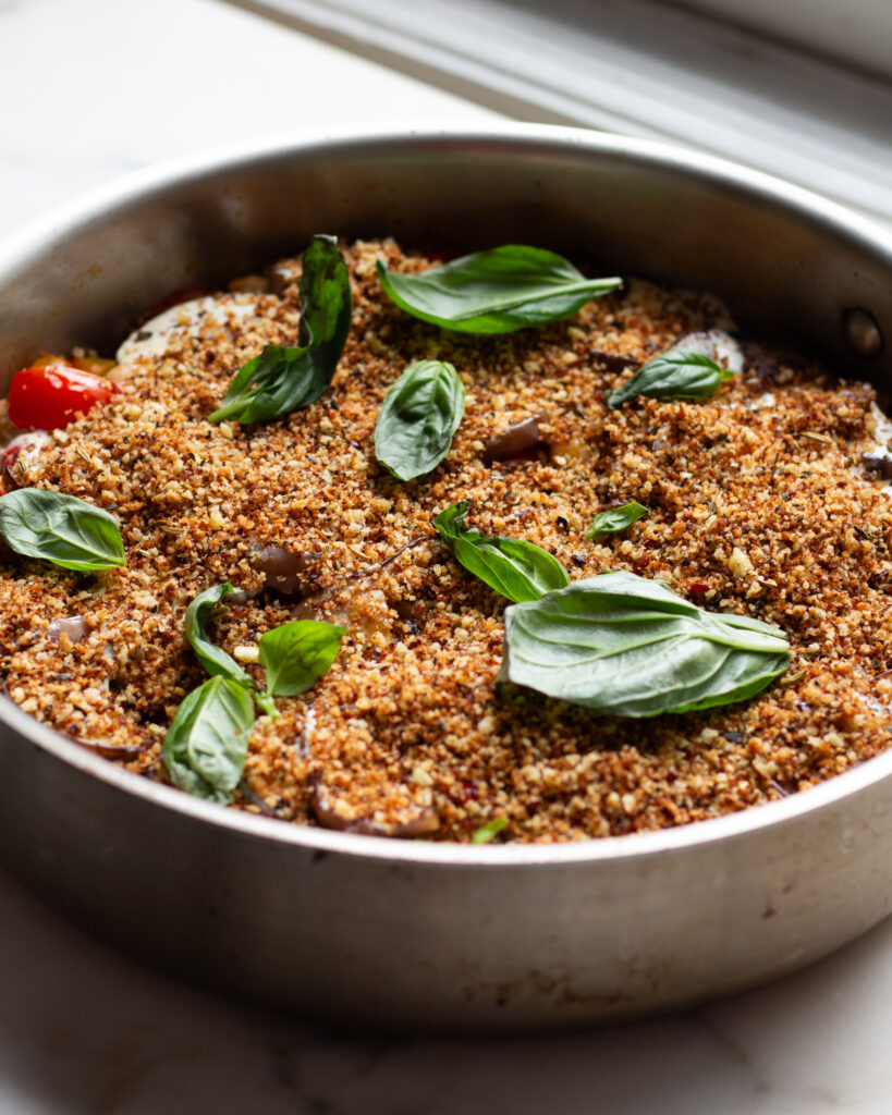 Top with the bread crumbs, and serve from the pan!