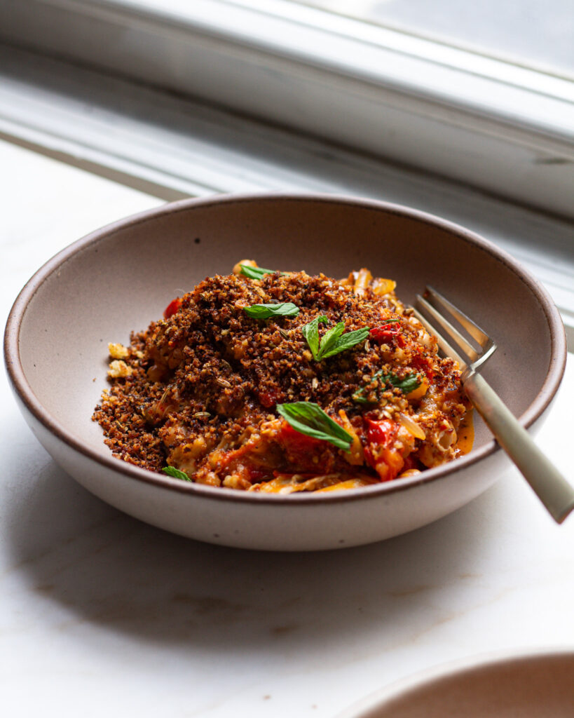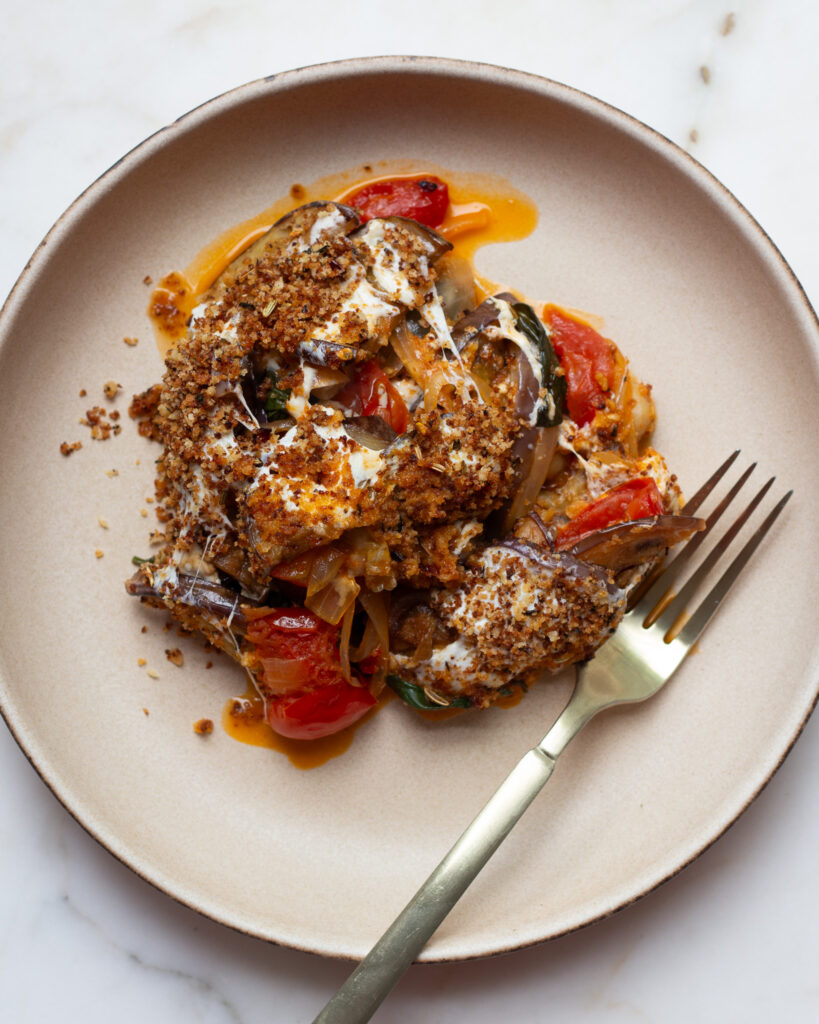 I love Justine’s recipes! With this one, I’d personally opt for less breadcrumb next time. I’d also probably add the breadcrumbs before the cheese to soften up then add a sprinkle on top for a bit of crispiness. I found the cup of toasted breadcrumbs on top to be a little too sandy and distracting. Overall, delicious recipe and not too labor intensive.