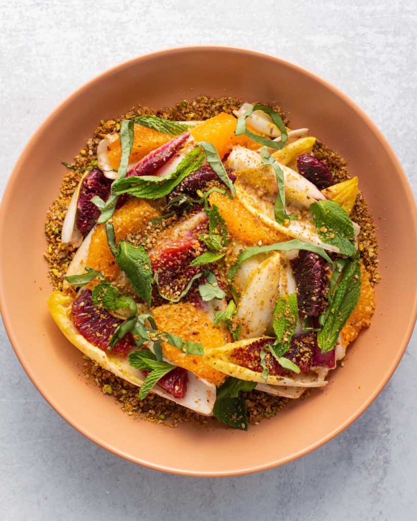 - Top the breadcrumbs with the endives, then add the orange slices and herbs. Top with more breadcrumbs and serve!