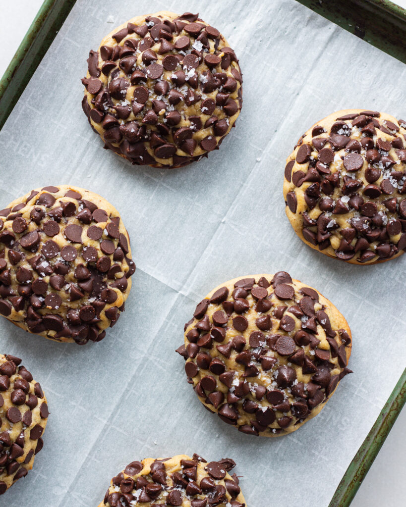 Placing the cookies straight from the freezer into baking also allows the chips to stay unmelted for as long as possible, which you’ll notice in the section above, is a key element to a Gideon’s cookie.