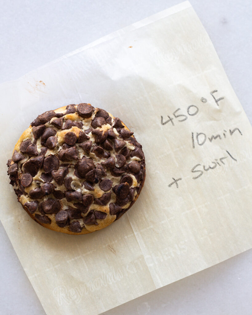 If you see the term “swirl” that means I used a cup to swirl the cookies along the edges. I then nixed this technique because, well, there were chocolate casualties. I’ve since replaced that technique with recommending that while the cookies are warm, you use a utensil like a spoon to nudge any edges into a perfect circle. It takes a bit of carefulness, but so far it’s worked very well for me!