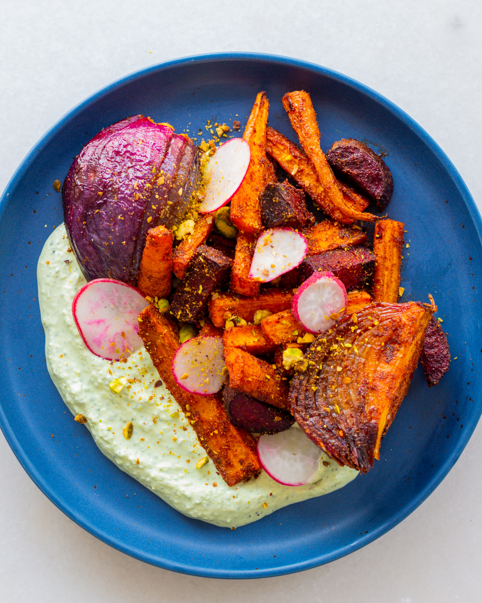 Spice-Rubbed Root Vegetables with Cilantro Skyr