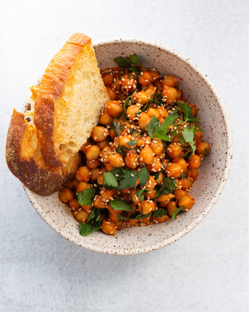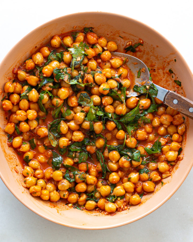 - Toss the herbs in with the chickpeas and give a quick stir to evenly distribute everything.