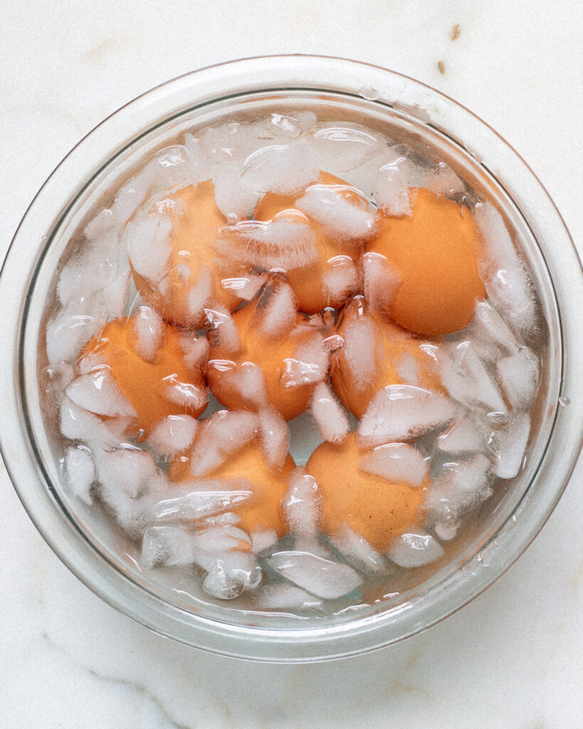 - While the eggs are boiling, prepare a large ice bath.