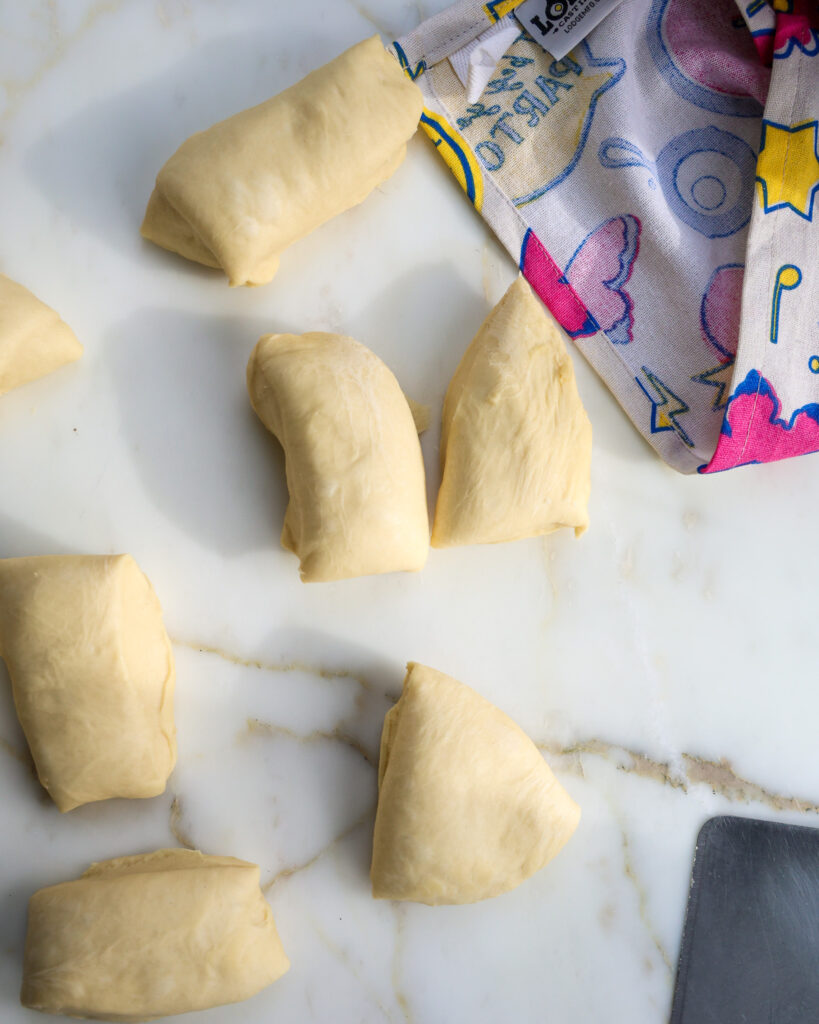 - In a small bowl, whisk together the remaining egg for egg wash. Right before you put the dough in the oven, brush them with egg wash.