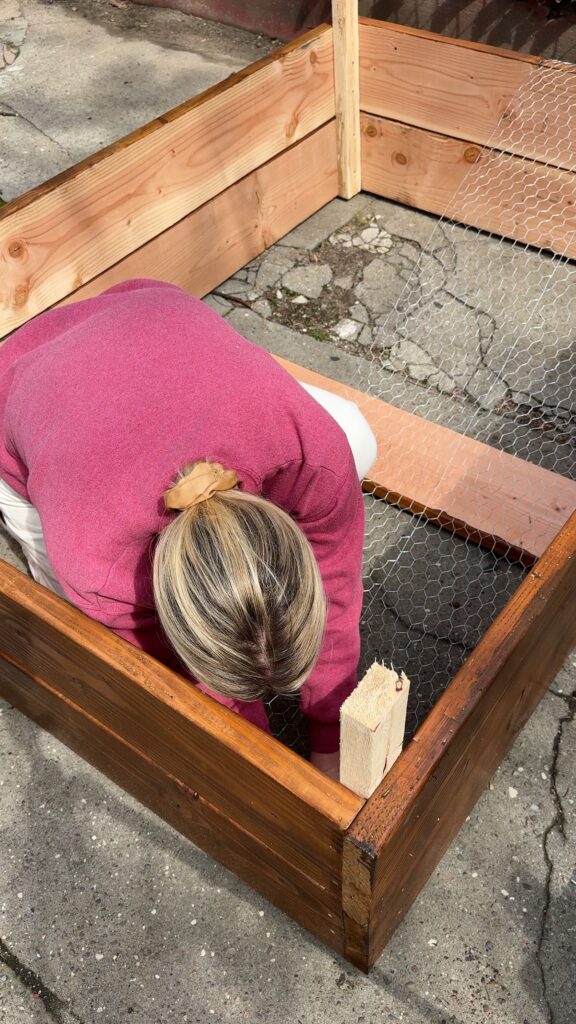 Step 3 – Attach the interior plank and line the edges with chicken wire