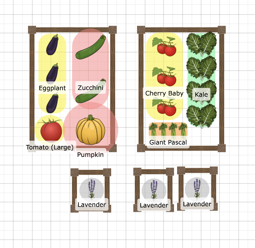 I used the Garden Planner from Almanac.com, which proved so helpful when it came to picking what plants to use and then choosing their layout. It’s very user-friendly and you just search your plant, then drag and drop it into your garden beds. From there the Almanac will tell you: