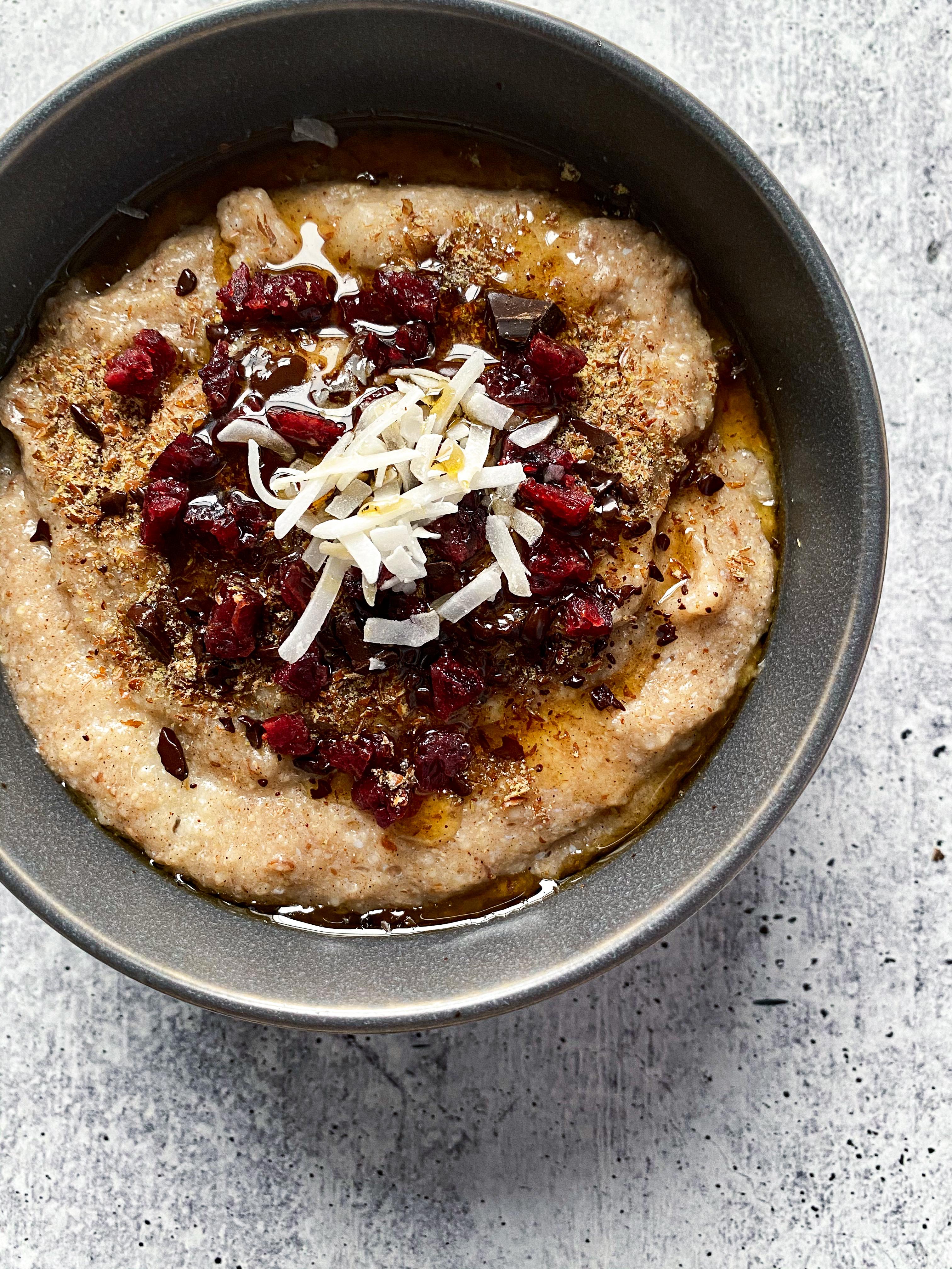 I treat these oats like dessert oats. They are delicious, they are jam-packed with filling ingredients and they feel like eating something rich and chocolatey, when really cacao is the only player in the chocolate game here.