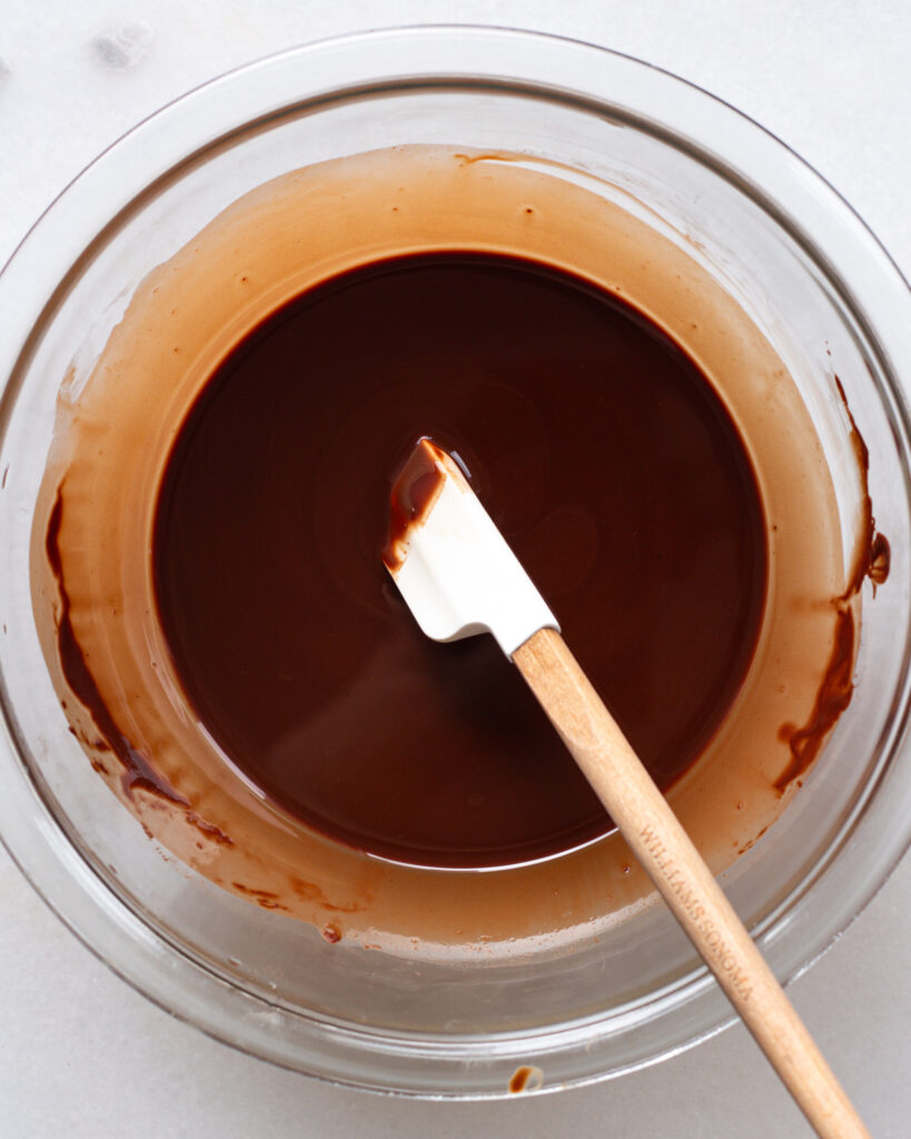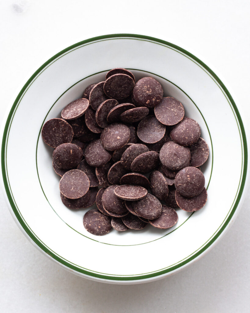 The most important thing for the chocolate in this recipe is you’ll want a chocolate that is ready and eager to melt. Try to avoid standard chocolate chips, because those have stabilizers in them that will make melting a generally *clunkier* process. I like the Guittard wafers I linked above, because they melt easily and don’t have any of the extras that other chocolate chips tend to have.