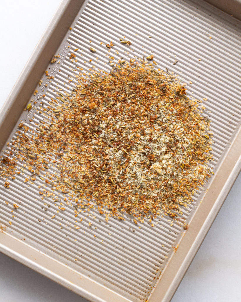 - Toast the breadcrumbs either on the stovetop or under your oven’s broiler for about 4-5 minutes, or until golden. Set to the side.