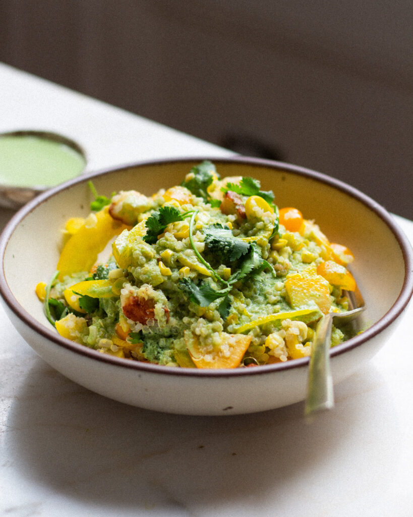 this is soooo good! i’ve made it twice, the first time with corn, peppers and tomatoes, and the second time with summer squash, green beans and carrots (per what we got in our CSA box) and it was delicious both times! truly my dream meal, creamy, crunchy, spicy, herby, zingy, salty- great for meal prep but also easy enough to make on a weeknight. you nailed this one Justine! thank you!