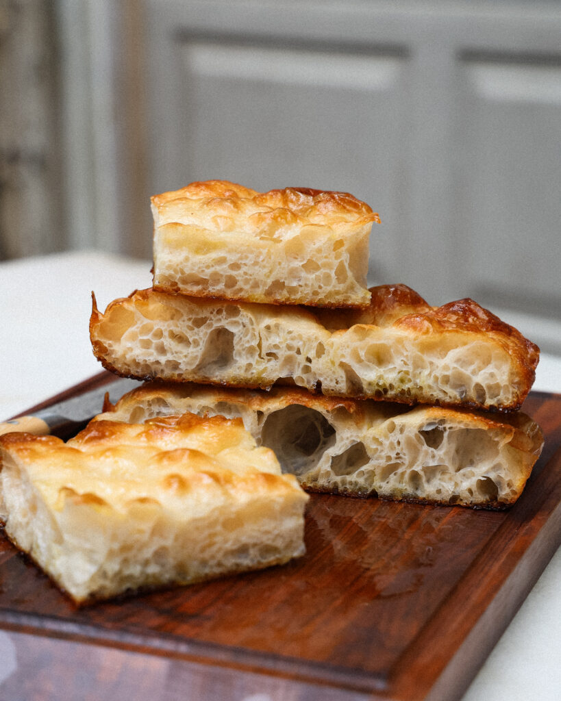This is the exact timing that Radio Bakery uses in their focaccia, and it allows it to build that signature sourdough flavor while building a nice, springy texture as well.