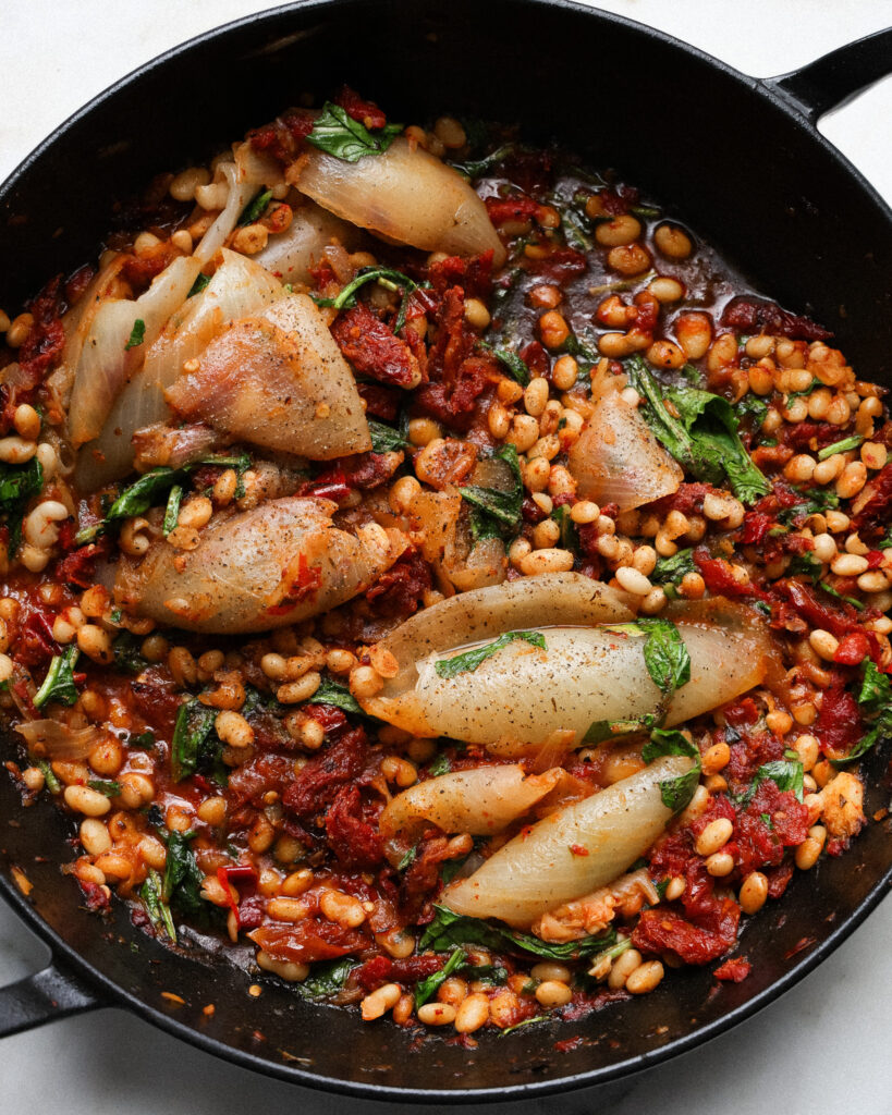 The big onions are from my brothy beans recipe, since the beans in the photos were cooked from dry! You can find that here: https://taille-fine.today/brothy-beans/%3C/a%3E and then just use the onions from that 🙂