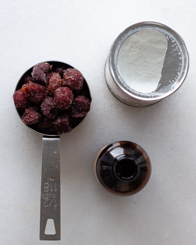 I didn’t have any cherries on hand but did have strawberries! I also added a 1/2 tbls of corn starch and half a teaspoon on almond extract. SO GOOD