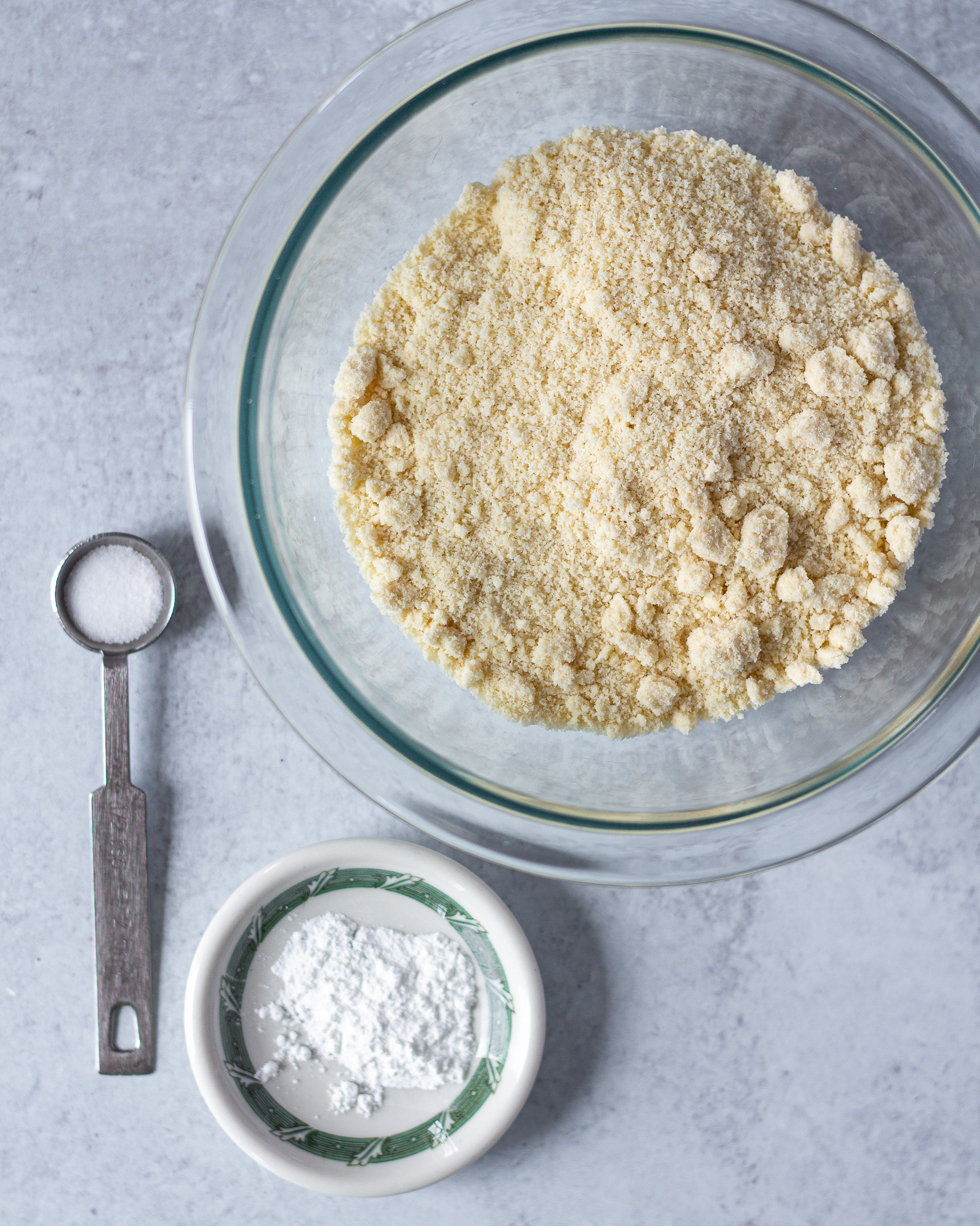 - To make the cookie dough, whisk together the almond flour, baking powder and salt.