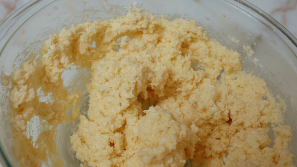 - You can make it with an electric mixer. Just start with the butter sugar and coconut, then once that is whipped add the flour. Finally the egg yolk goes in to pull it all together. It’s backwards from a normal pie crust, but so insanely easy.