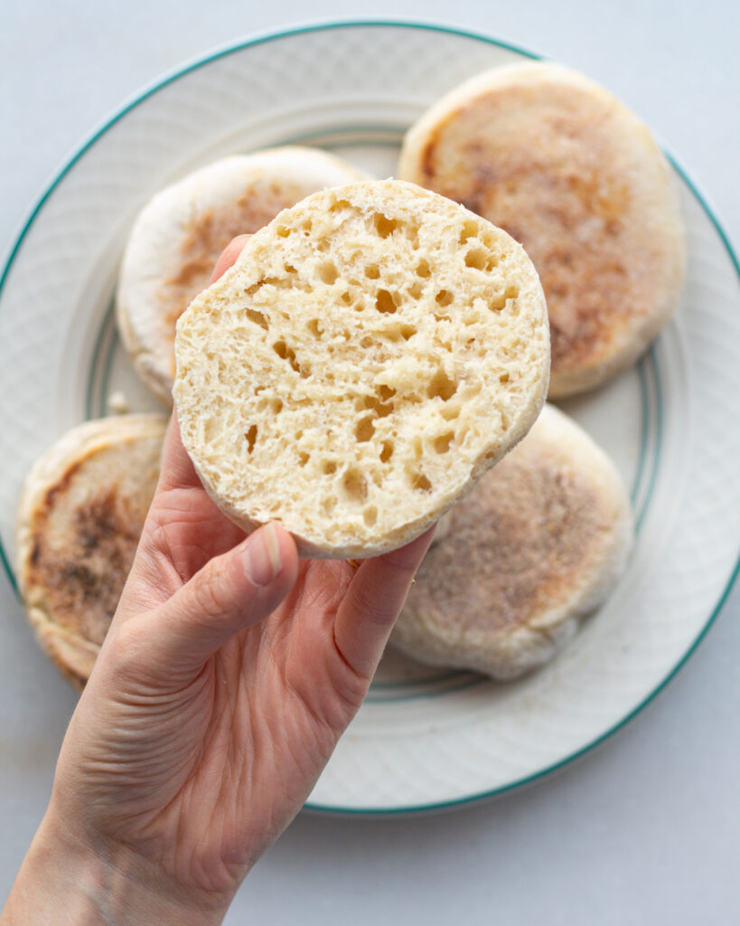 These muffins are easy to make because they don’t need much handling (or kneading) at all! The gluten in this dough forms due to the long fermentation period over time. Since the dough is hydrated and sitting in the fridge overnight, there’s not much work required on our end!