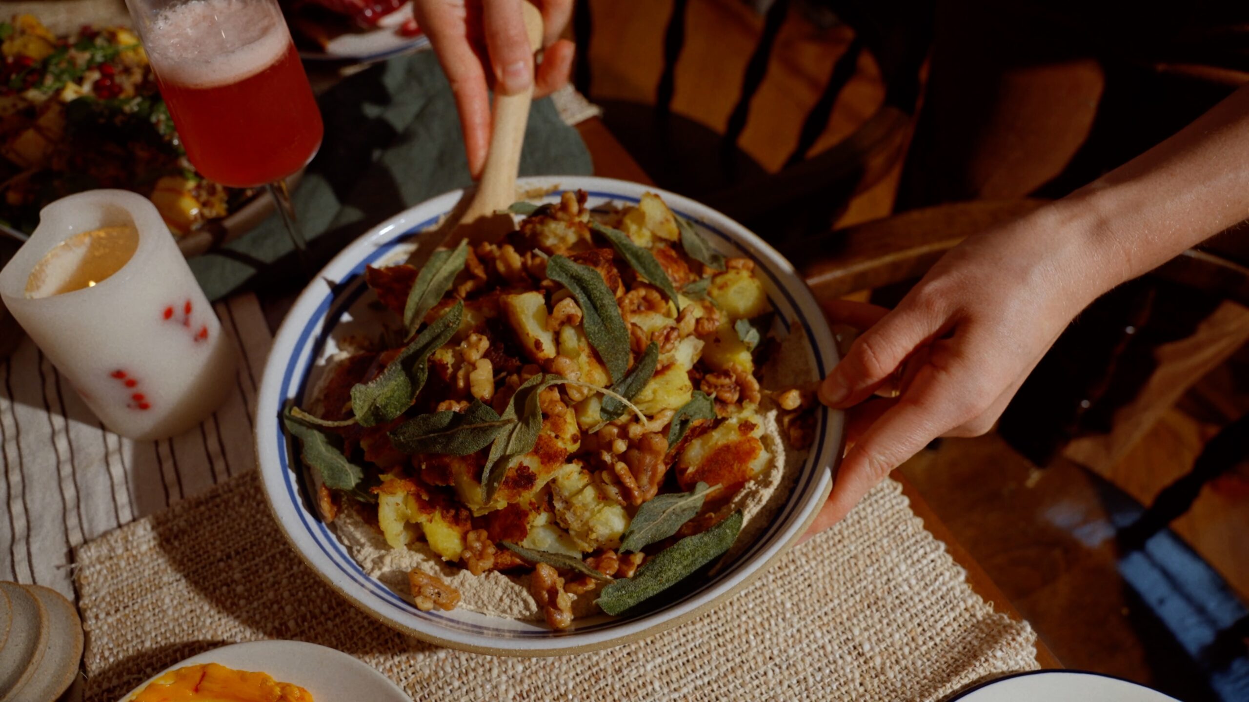 Brown Butter Crispy Potatoes with Walnuts & Sage