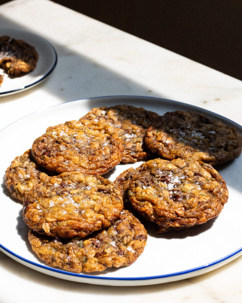 If I didn’t trust Justine implicitly from other banger recipes, I never would have tried these cookies. Zucchini in cookies sounds terrible, but DAMN. These may be the best cookies I have ever had. So tender and delicious. Also, definitely recommend sticking to weights when mixing. I had to add way more than 1 1/4c oats to get the appropriate weight. More like 1 1/2c I think? Maybe 1 3/4c. The butter/oats pre-cooked on the stopetop was also GENIOUS! Never would have thought to do that. Another amazing recipe, thanks Justine!