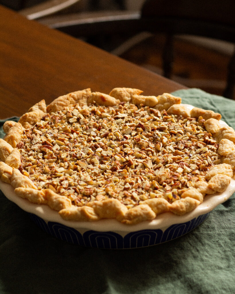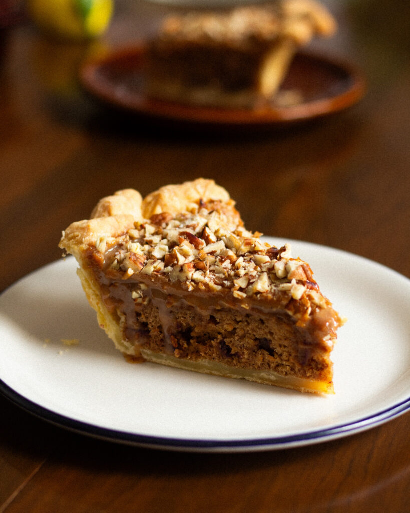Now, I will say, this is a very holiday-energy pie. Meaning: it is a labor of love. But WOW does that labor deliver. You’ll need a few bits of equipment, but you can always side-step a few things by adding a store-bought pie crust, or prepping the sticky toffee batter or pumpkin batter ahead of time. Both keep pretty well.
