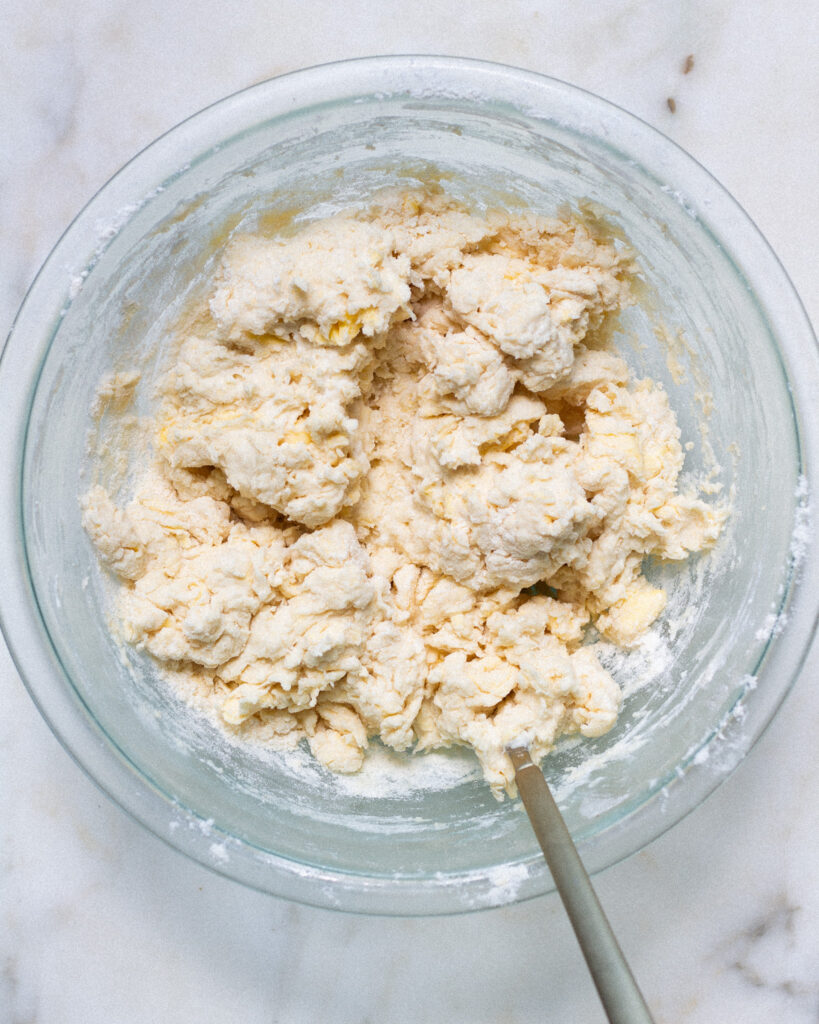 You’ll know when the dough is over-mixed. It will get a gummy, tacky consistency, which means you’ve gone too far. What you are looking for is a loose, crumbly consistency where the dough *just* holds together. Feel free to add some flour to your work surface when you cut the shortcakes. This will make it easier to gently handle the dough, and it will help lock in any butter that might peak out from the shortcakes!