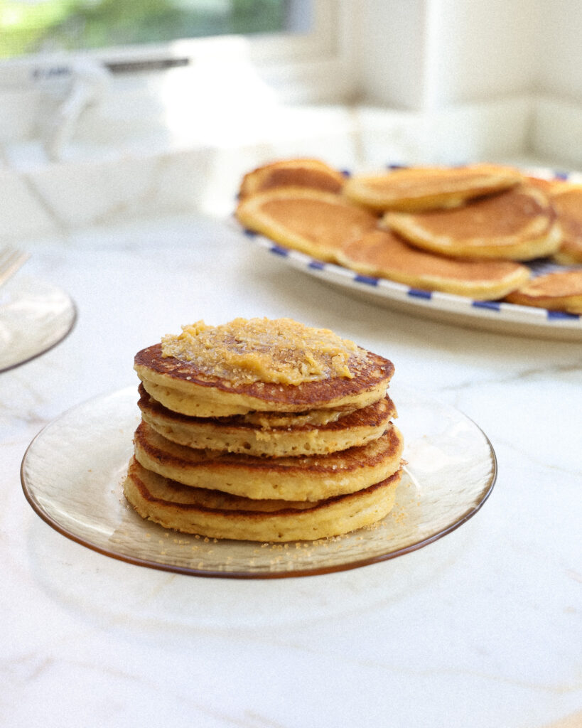 - To serve, encourage everyone to top the pancakes with corn butter and a sprinkling of turbinado sugar. But of course, your own preferred way is always the best way!