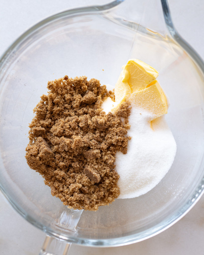 I recommend creaming together the softened butter with the sugars first, before adding the egg and the browned butter chocolate mixture. This will give you a smooth base to start the aeration process of the wet ingredients, making them light and fluffy.