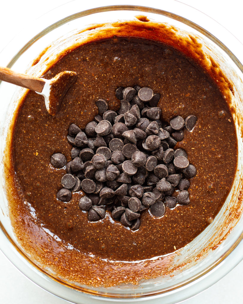 - Add in the cup of chocolate chips and fold it into the batter.