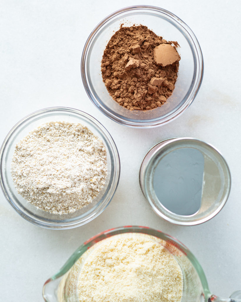 - In another bowl, whisk together the almond flour, oat flour, cocoa powder, baking soda and salt.