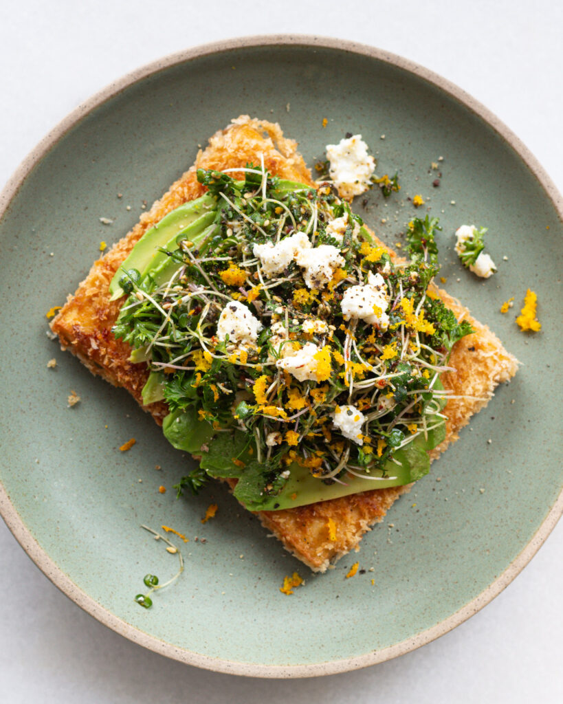 This cutlet was made on a day where I was feeling a particular craving for either avocado toast or a cutlet, and the cutlet won out tenfold. It might be a little extra work, but when topped with lemony, citrusy sprouts, just the right amount of avocado and my favorite olive oil, it was one of my next-best ways to make crispy tofu. Plus, it might seem like a lot of work, but if you set up your breading station just right, you can churn out a crispy, salty, breaded cutlet in no time. This blog post will show you how!