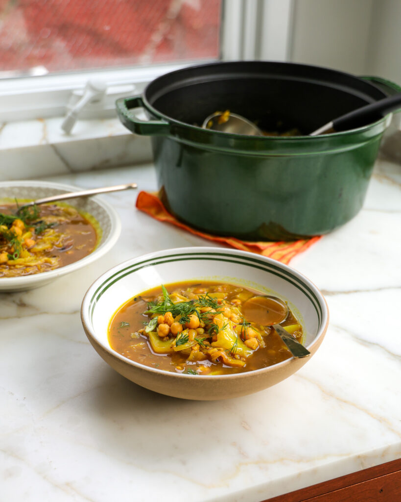 This soup is a great plant-based option, but also equally delicious if you make it with chicken broth. The whole thing comes out warm, cozy, and really great with crusty sourdough.