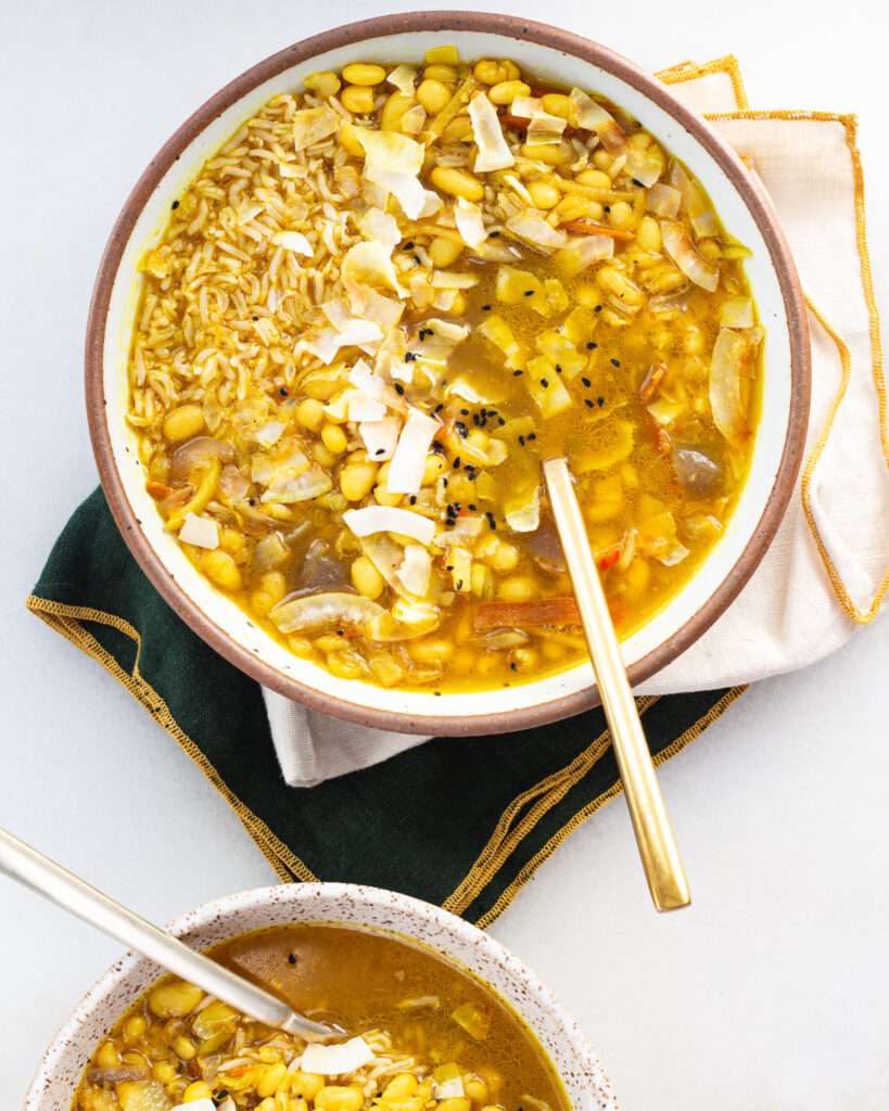 Below is the original Turmeric & Ginger White Bean Soup that was first developed. For the updated recipe, please see the above.