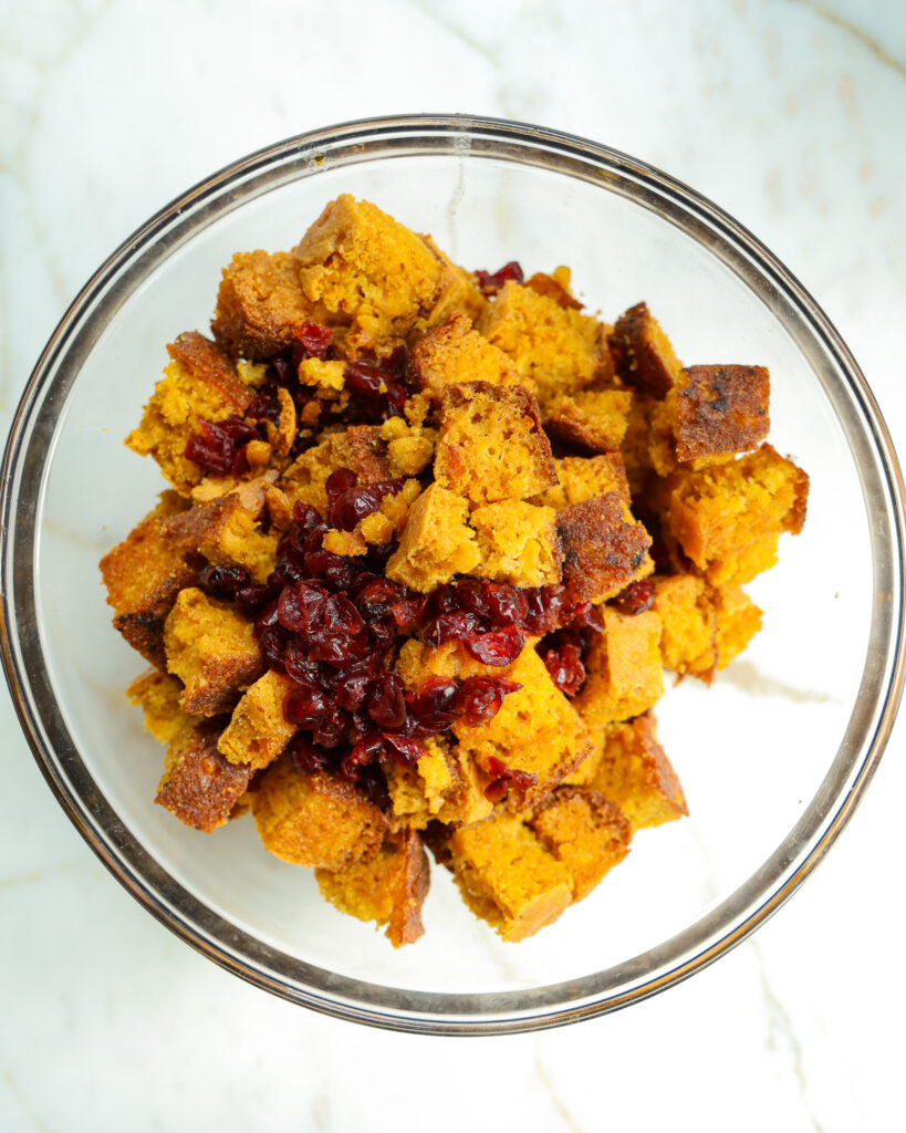 - 2 1/2 pounds of cornbread, about one 9-inch skillet, my preferred recipe is here: https://taille-fine.today/skillet-cornbread-with-serrano-cilantro-dressing/%3C/span%3E%3C/li%3E%3Cli class="wprm-recipe-ingredient" style="list-style-type: none;" data-uid="1">1/2 cup dried cranberries